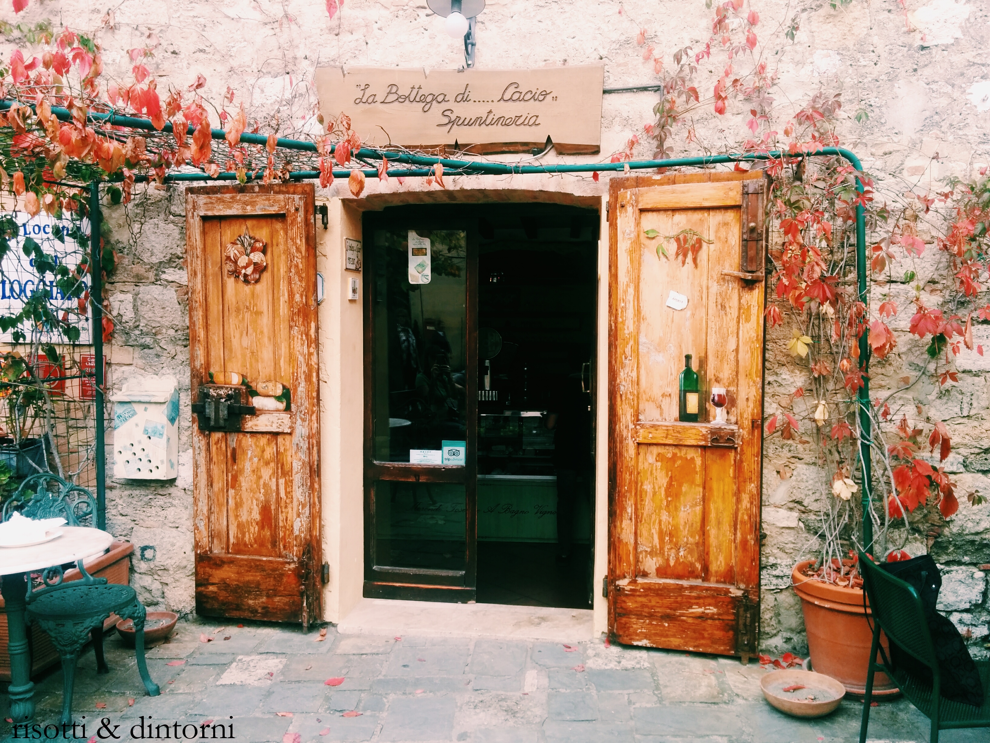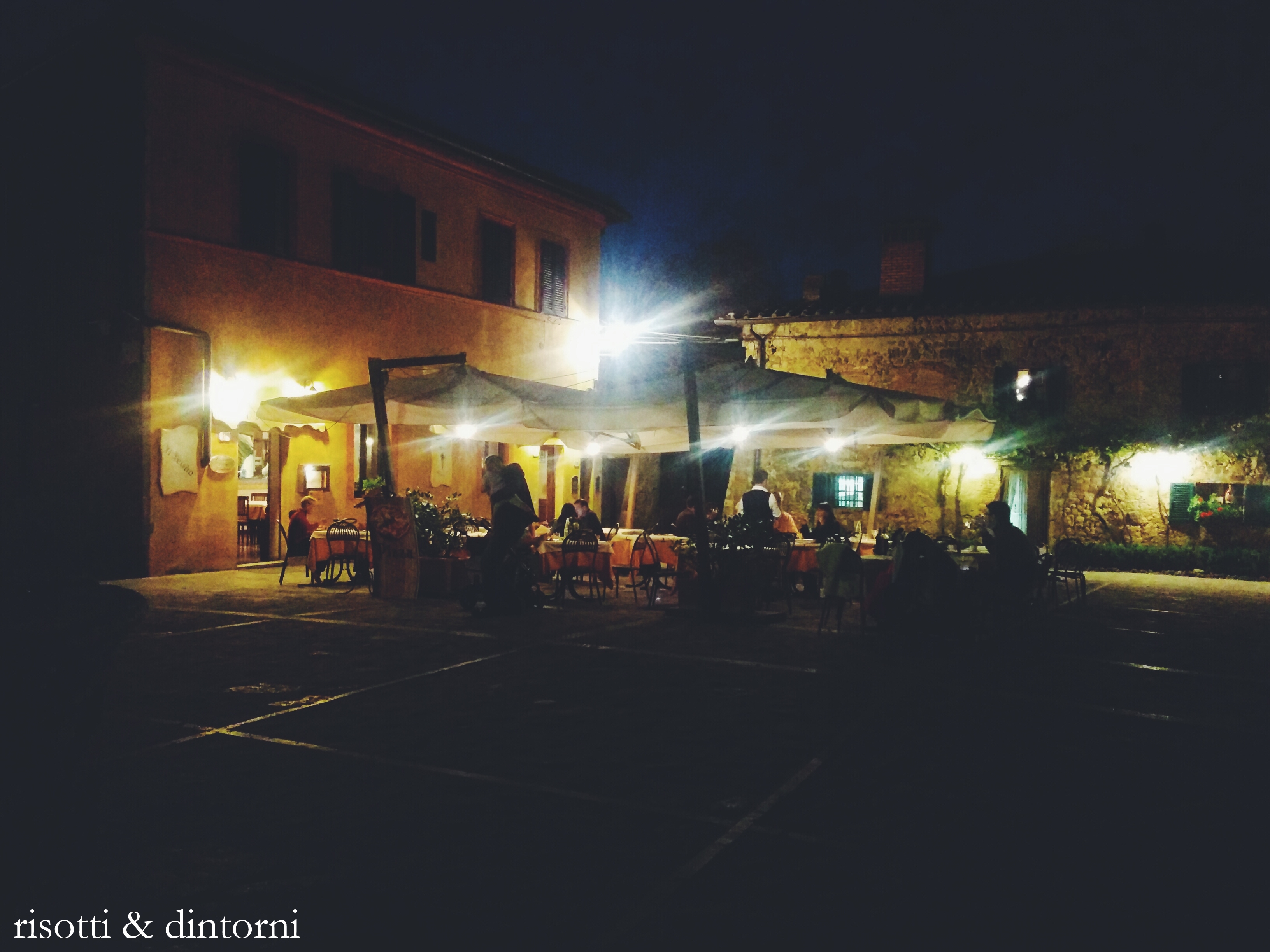 un piccolo aneddoto che ci è capitato questa volta: ci siamo arrampicati fino alla piazza principale di rocca d’orcia, un piccolo borgo medievale arroccato in cima a una collina che nel 2001 contava 47 abitanti in tutto. mentre ammiravamo il contesto, ci è venuto incontro un bellissimo gatto grigio con un gran testone e io, gattara di nascita, ho cominciato a fargli le coccole mentre lui miagolava soddisfatto. da dietro un’angolo, è spuntata una signora con il bastone che avrà avuto tra gli 80 e i 90 anni ma mi sa più verso i secondi borbottando verso il gatto che era inutile miagolasse disperato, che avremmo pensato che non gli desse da mangiare e lei ci avrebbe fatto brutta figura. per dimostrarci che il cibo non gli mancasse ha voluto che entrassimo in casa sua, un piano terra affacciato direttamente sulla piazza del paese e ci ha guidato fino alla sua cucina dove non solo c’era un camino come quelli di una volta con il paiolo di rame a sospensione ma c’erano anche ben 6 ciotole piene di pasta, riso e carne per lui e per gli altri 4 gatti!