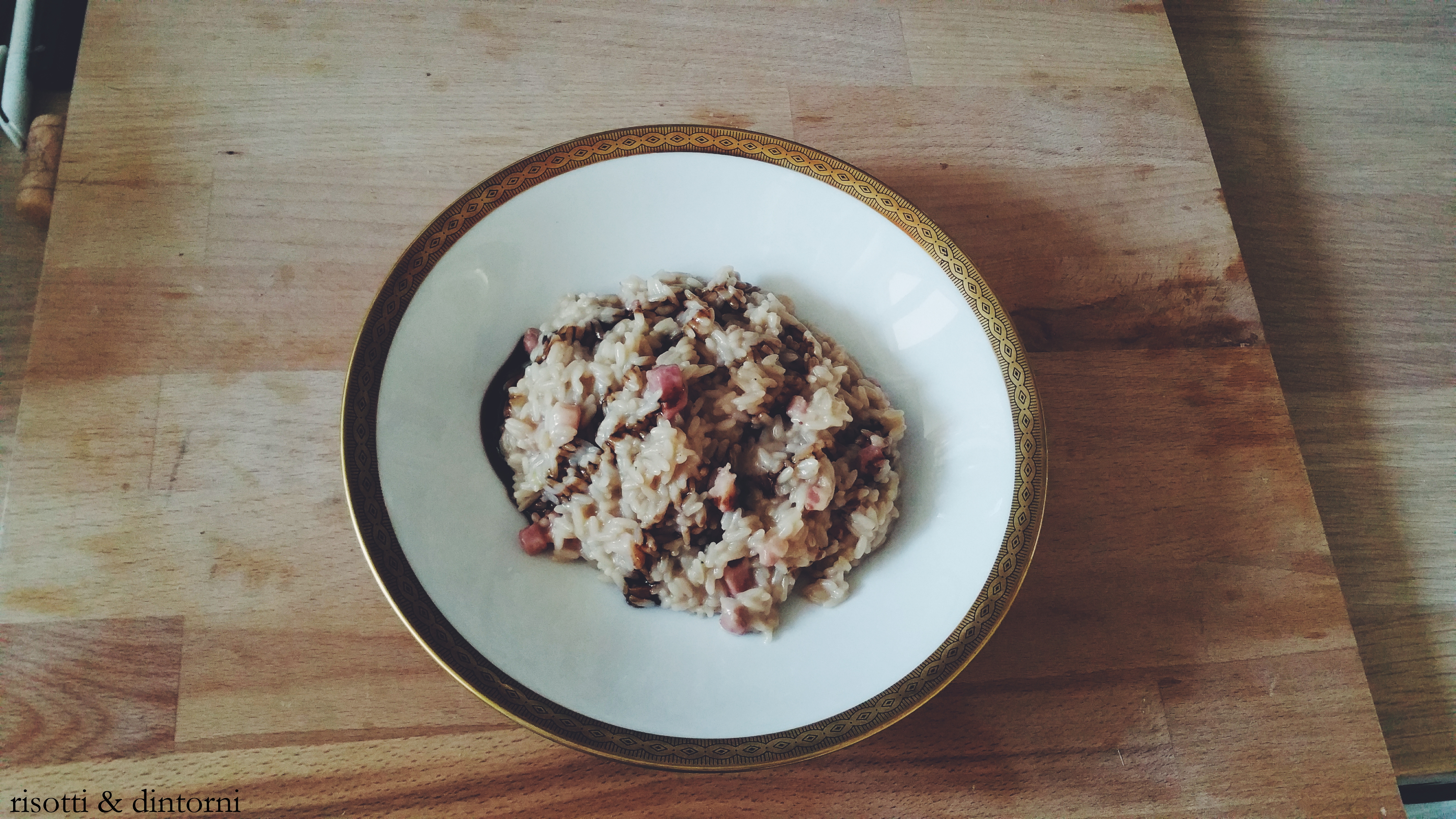 facciamo soffriggere lo scalogno tagliato fine in un po’ di olio evo e uniamo la pancetta dolce. quando sarà ben cotta, aggiungiamo il riso e facciamolo tostare per qualche minuto, per poi sfumarlo con un bicchiere di valpolicella. una volta evaporato, aggiungiamo il brodo, che avremo precedentemente scaldato, fino a quando il riso sarà pronto. a fuoco spento, mantechiamo con il parmigiano e la fontina (volendo anche qualche pezzetto di burro, ma è anche evitabile, secondo me). per finire, dopo aver impiattato, sforbiciamo a piacere un po’ di glassa di aceto balsamico!